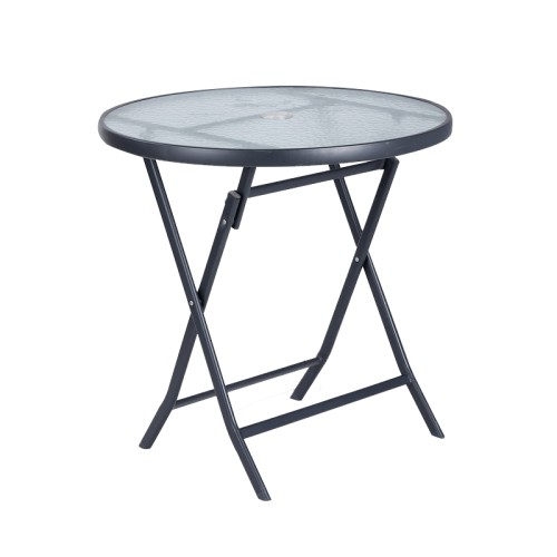 BORMANN BSP1160 Τραπέζι Εξ. Χώρου Πτυσσόμενο Μεταλλικό, Γκρι Σκελετός & Γυάλινη Επιφάνεια, Φ60x72cm