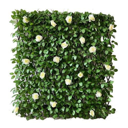 BORMANN BPN1204 Συνθετική Φυλλωσιά με Λευκά Τριαντάφυλλα σε Ξύλινο Καφασωτό 2x1m