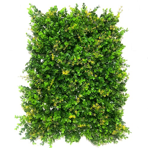 BPN1208 · Συνθετική φυλλωσιά με κίτρινα άνθη· Πλαστικο πλέγμα στην πίσω όψη· Χρώμα: πράσ..