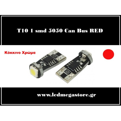 T10 Can Bus με 1 SMD 5050 Κόκκινο