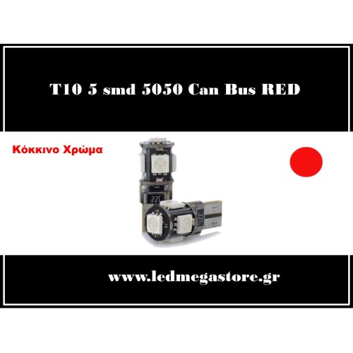 T10 Can Bus με 5 SMD Κόκκινο