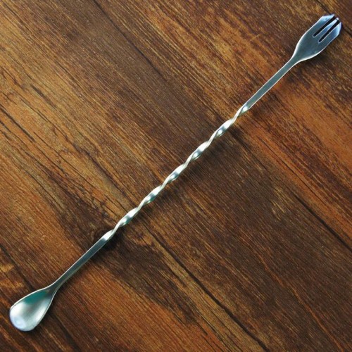 Ανοξείδωτο κουτάλι ανάμειξης κοκτέιλ με πηρούνι - 33cm