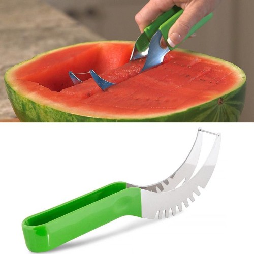 Εργαλείο κοπής καρπουζιού σε φέτες, με αντιολισθητική λαβή σε πράσινο χρώμα. Κόβει σε κο..