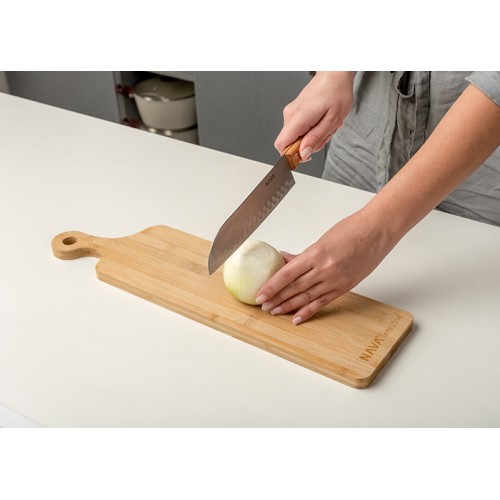Το μαχαίρι Santoku Terrestrial της NAVA διαθέτει πλατιά, αιχμηρή λεπίδα Ιαπωνικού τύ..
