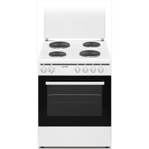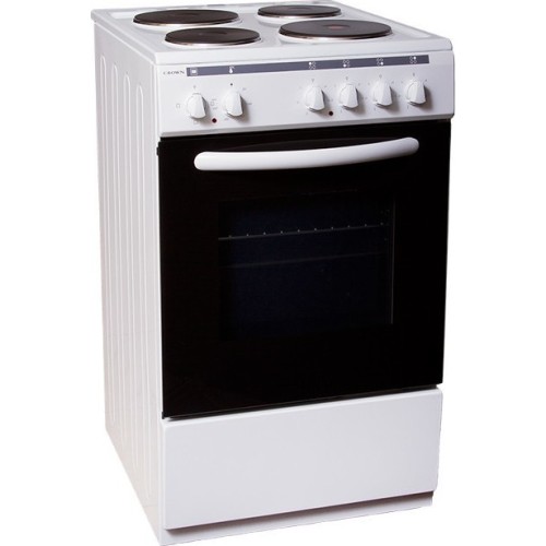 Κουζίνα Crown 5400A White με φούρνο 53 λίτρων και 4 εστίες εμαγιέ. Ο φούρνος έχει 3 προγράμματ..