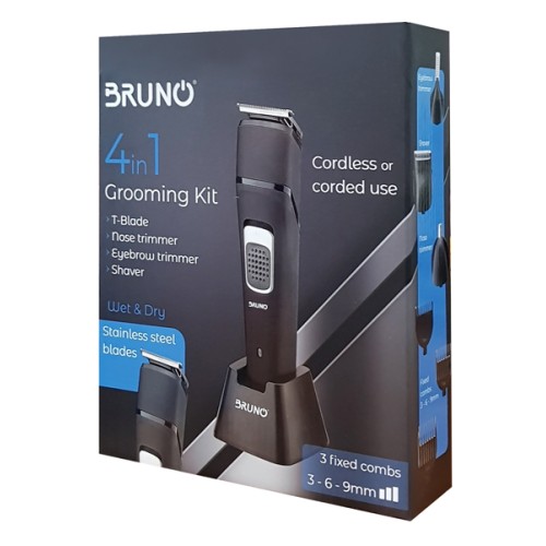 BRUNO Κουρευτική μηχανή 4 σε 1 BRN-0023, wet & dry, 6 εξαρτήματα, μαύρη