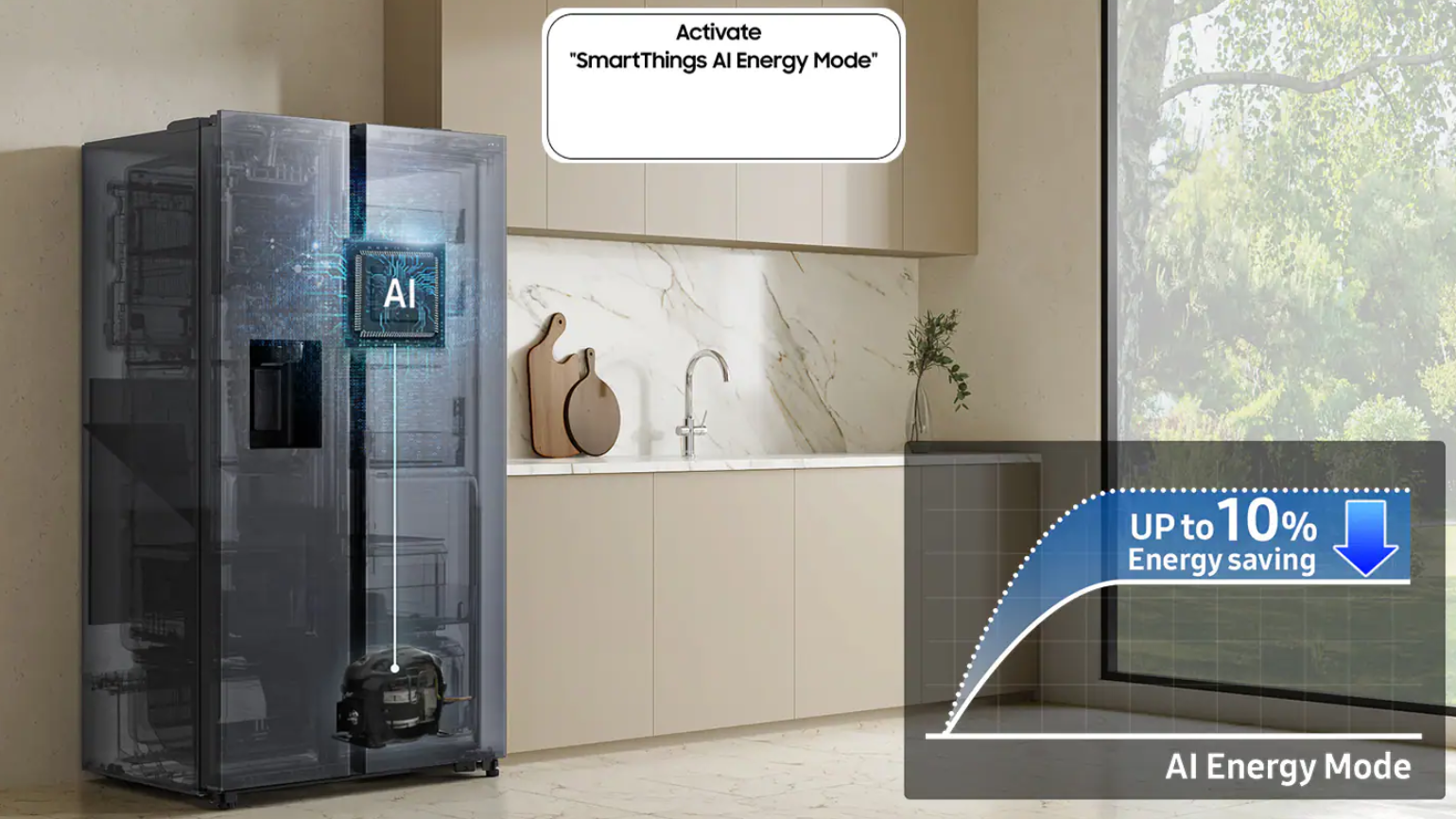 Με τη λειτουργία AI Energy, διαθέσιμη στο SmartThings Energy, μπορείς να μειώσεις την κατανάλωση ενέργειας έως και 10%. Η ταχύτητα του συμπιεστή και ο κύκλος απόψυξης προσαρμόζονται έξυπνα στις συνήθειες και στο περιβάλλον σου.