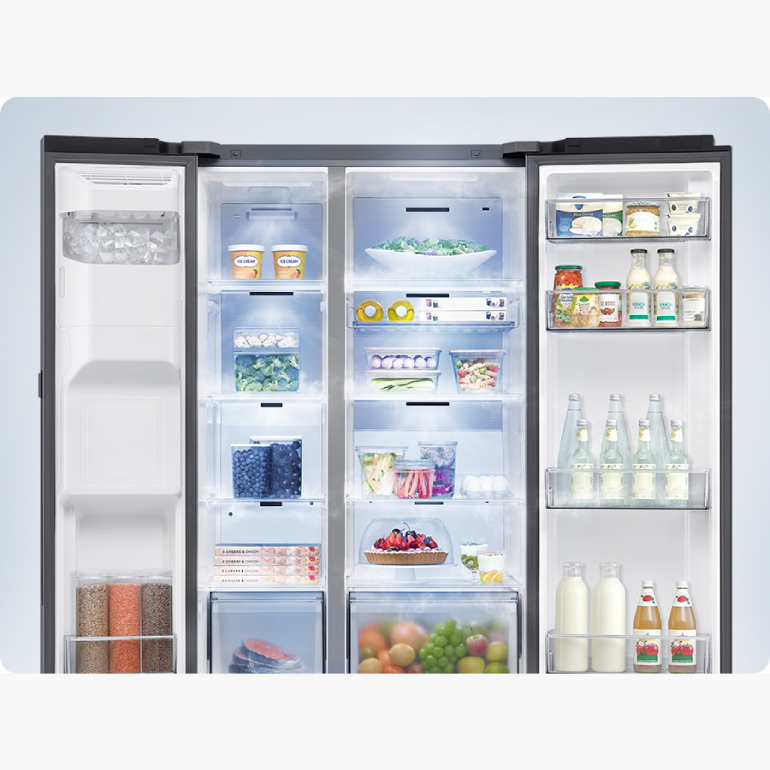 Με το ενσωματωμένο Wi-Fi, μπορείς να παρακολουθείς και να προσαρμόζεις την απόδοση του ψυγείου σου μέσω της εφαρμογής SmartThings. Ελέγχεις τη λειτουργία ψύξης, αλλάζεις θερμοκρασία και λαμβάνεις ειδοποιήσεις αν ξεχάσεις την πόρτα ανοιχτή. Επιπλέον, το σύστημα σε βοηθά να εντοπίσεις έγκαιρα τυχόν προβλήματα.